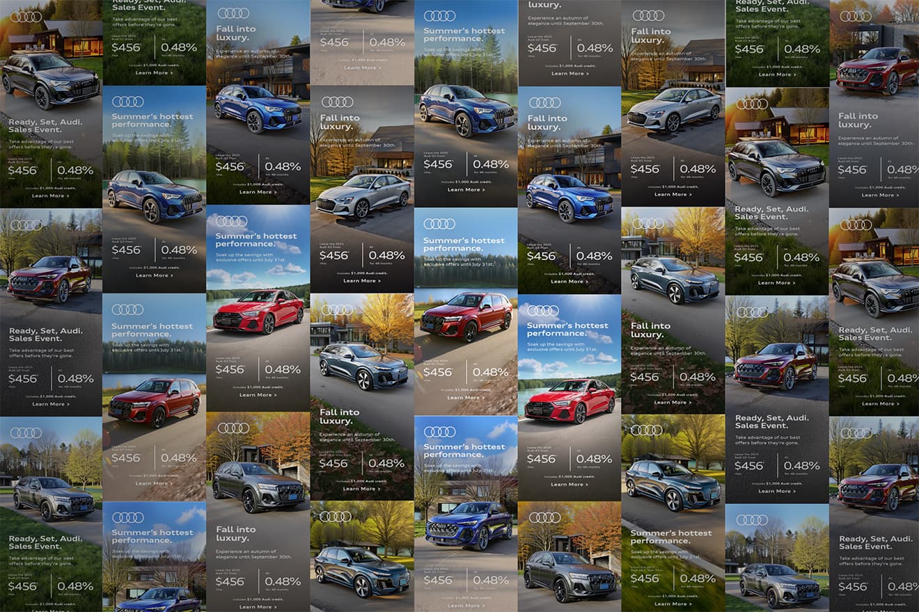 Fuelled by the Vorsprung durch Technik mentality we’ve blended real world inputs - 2500+ images captured by our team of every new Audi model - and built them into a Low Rank Adaptation (LoRA) GenAI model that gives us control over fine-tuning as well as the highest performance output possible.